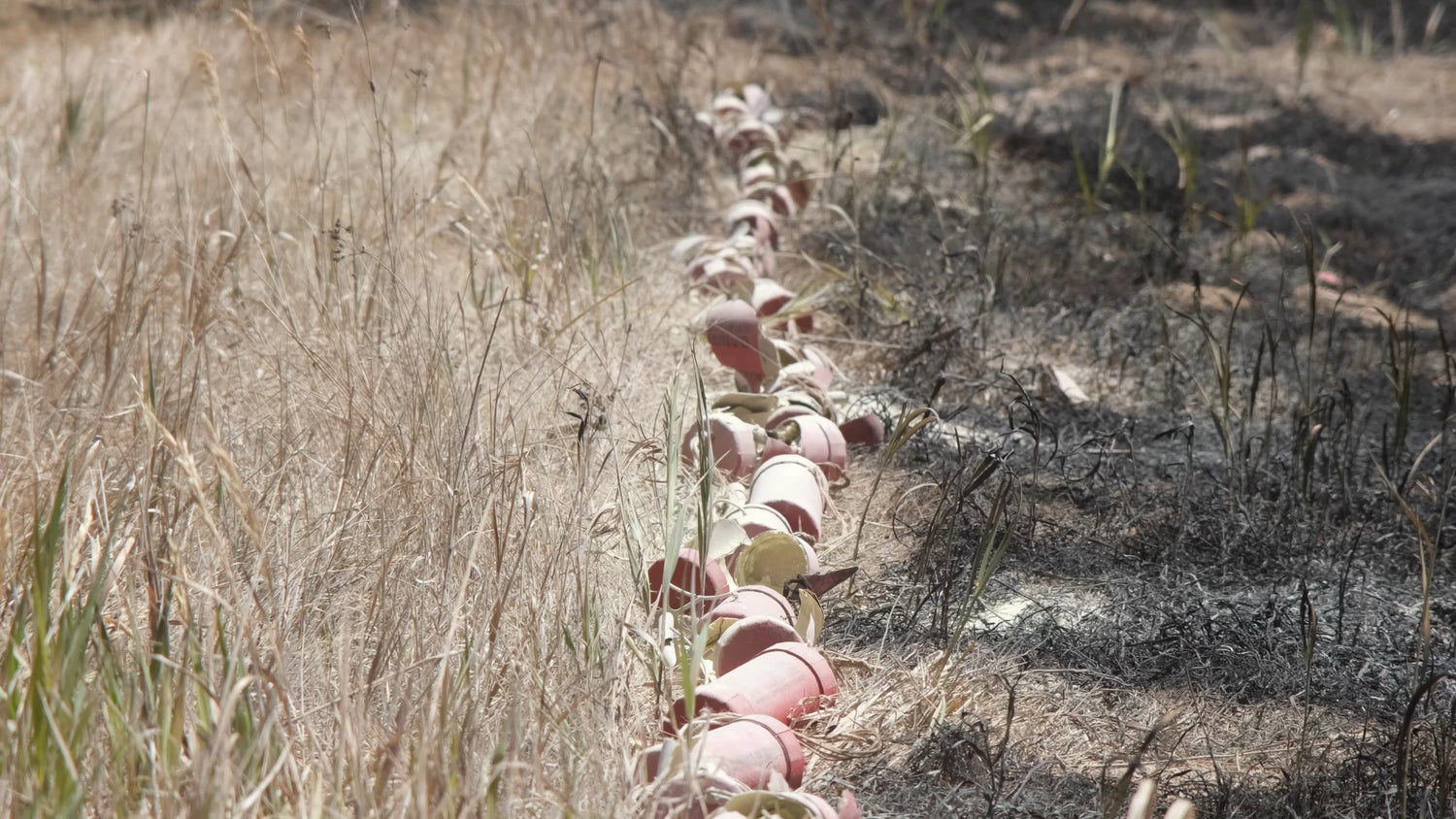 If the Blaze Barrier was deployed on a lawn or you just want to pick up what's left, the pieces can be placed in recycling or trash.